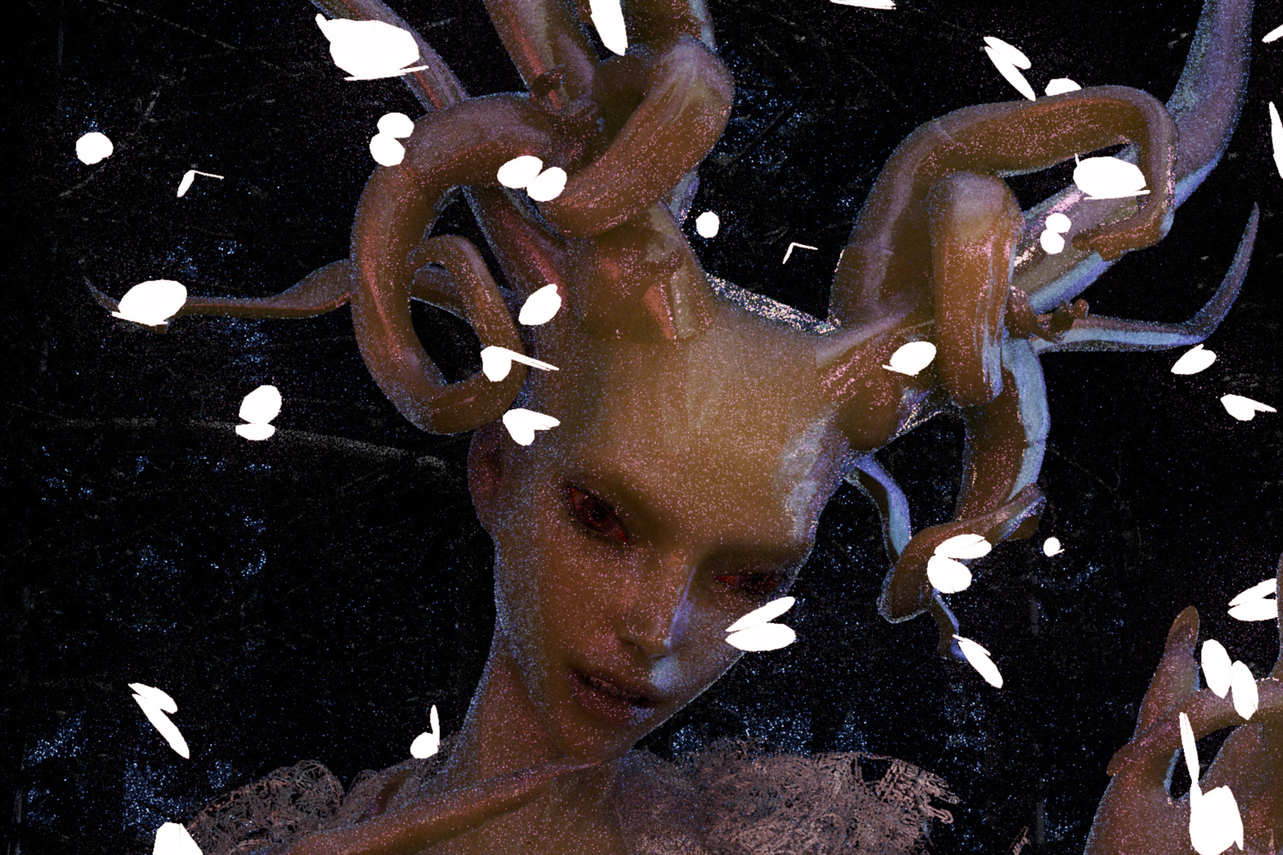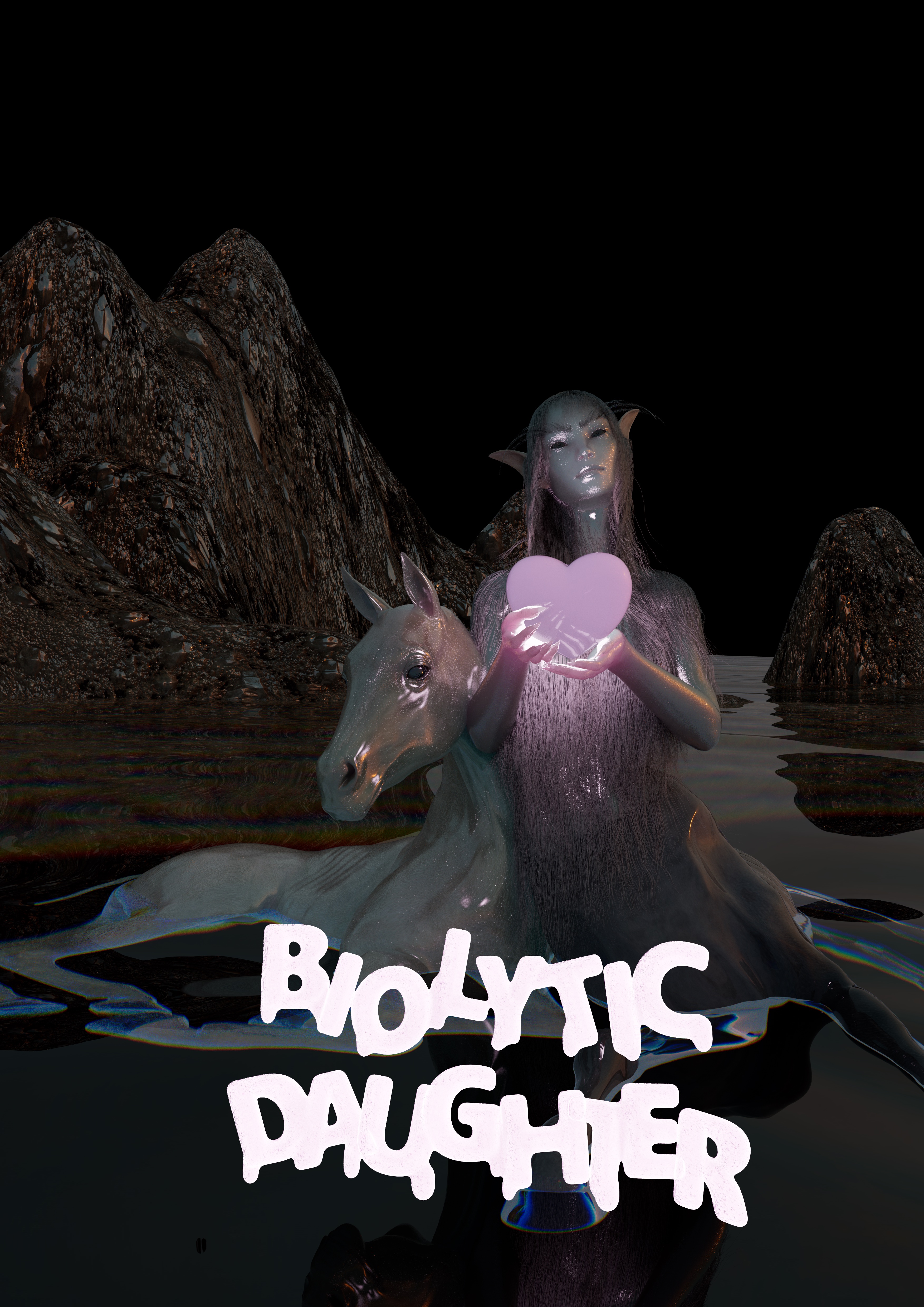 At the centre of Biolytic Daughter is Uncensored Lilac, a 30-minute video work that tells a story of revenge and desire. A group of goddesses and their assembly of familiars, pets, servants, and technologies are lounging. Separated from one another, they share a land but not a common ground. They have been invaded. They are pretty, hot, bothered, and bored. They are ready to destroy each other. They look deep into the camera and recite their deepest wishes, hopes, dreams, and fantasies. Meanwhile, temperatures are rising. They morph and grow and make their rage known. Quick to anger, their tempers rise with the heat.